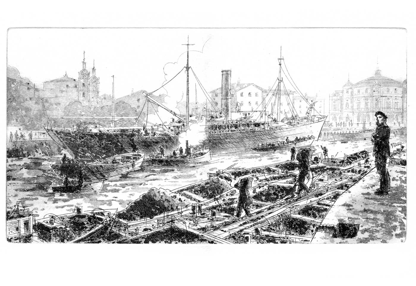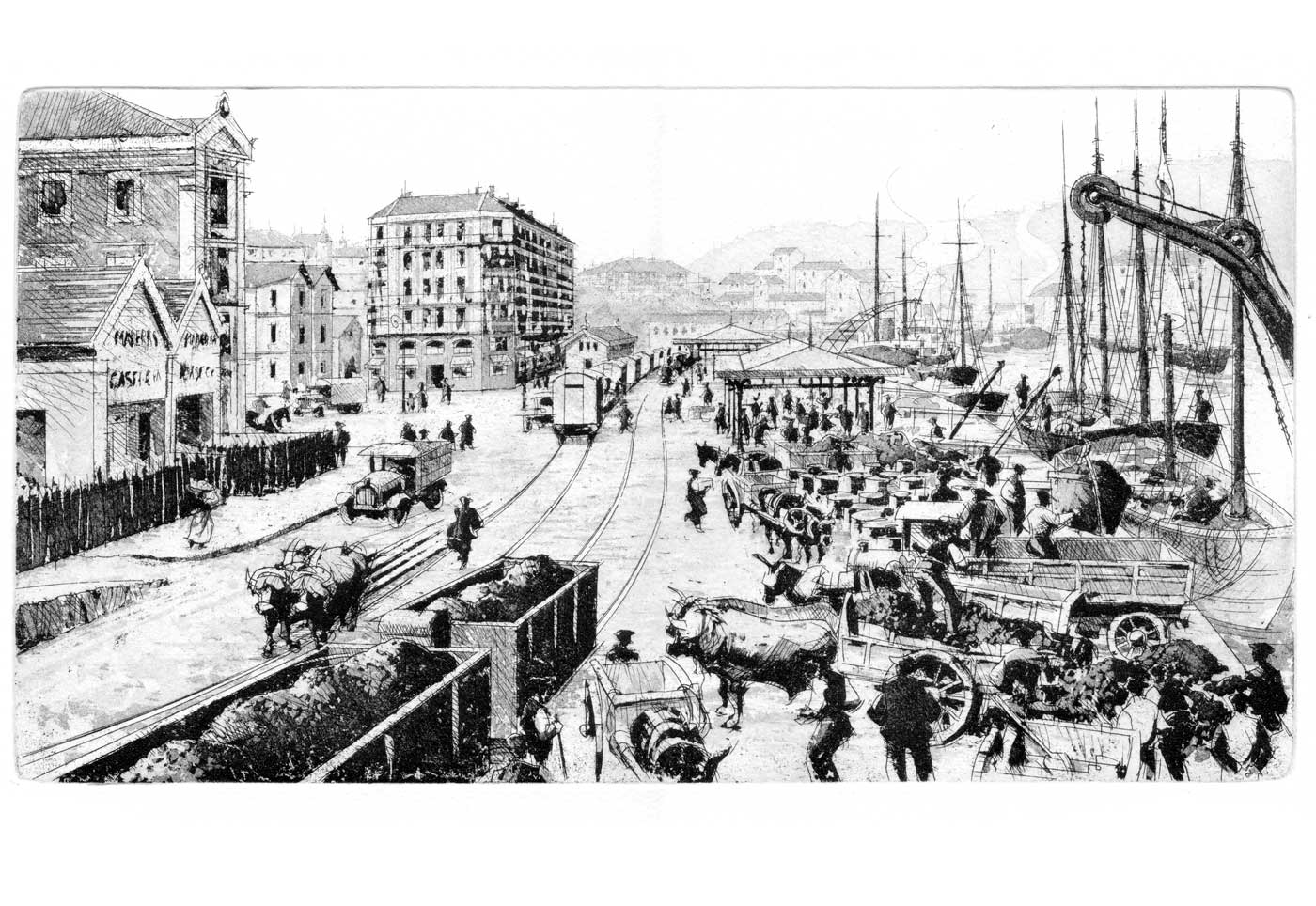 Muelle de UribitarteAguafuerte y aguatinta